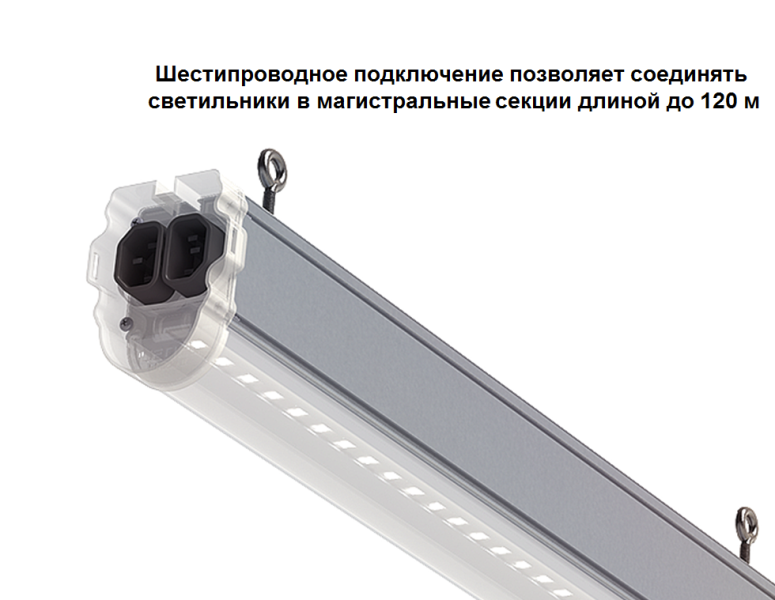 Система крепления EASY LOCK 2.0 позволяет соединить светильники между собой в непрерывные магистральные секции до 120 м.